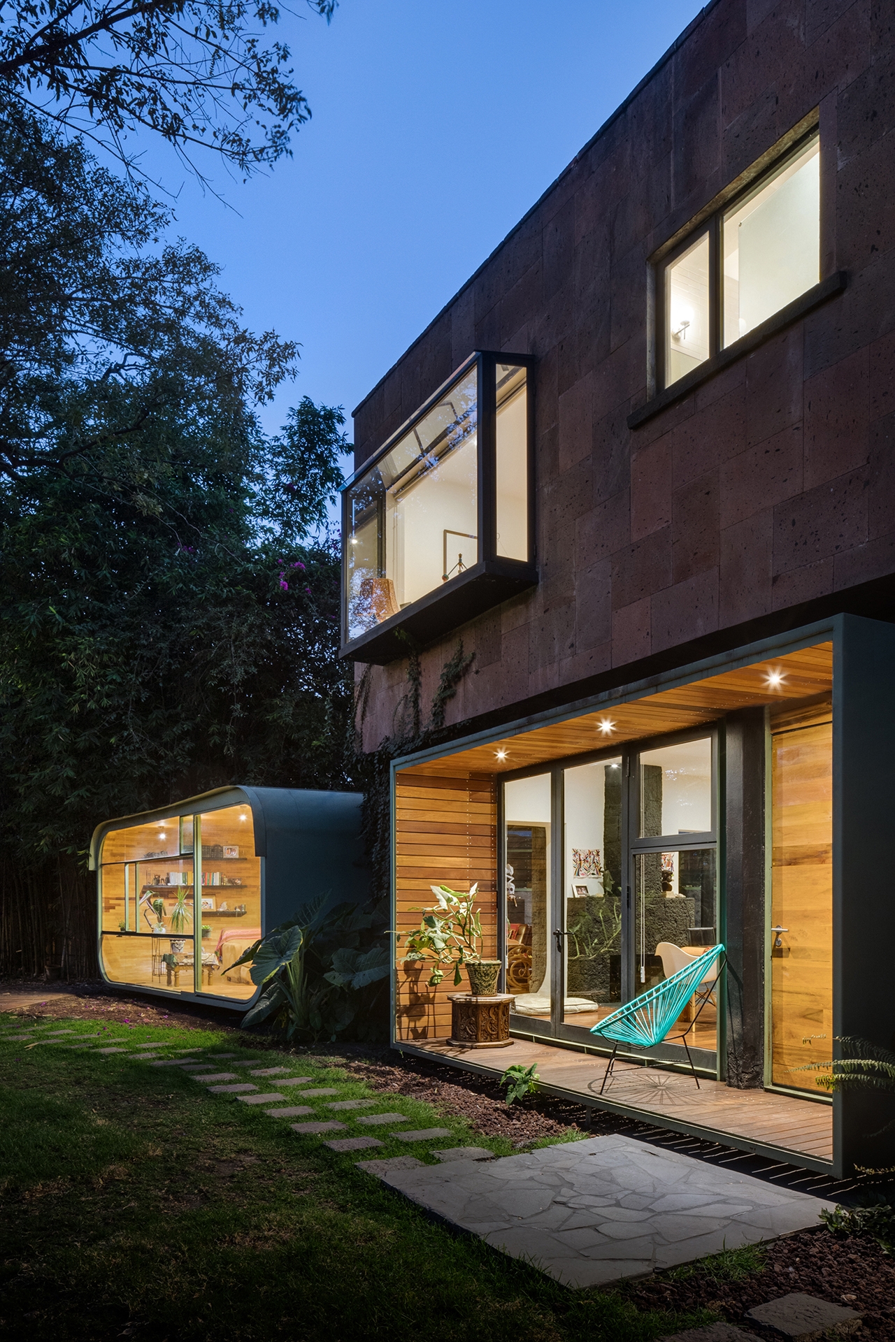 Dos viviendas componen el interior de la estructura original, cada una con el área social en planta baja para conectarse con el majestuoso jardín y con su área privada en el primer nivel donde se encuentran las recamaras.