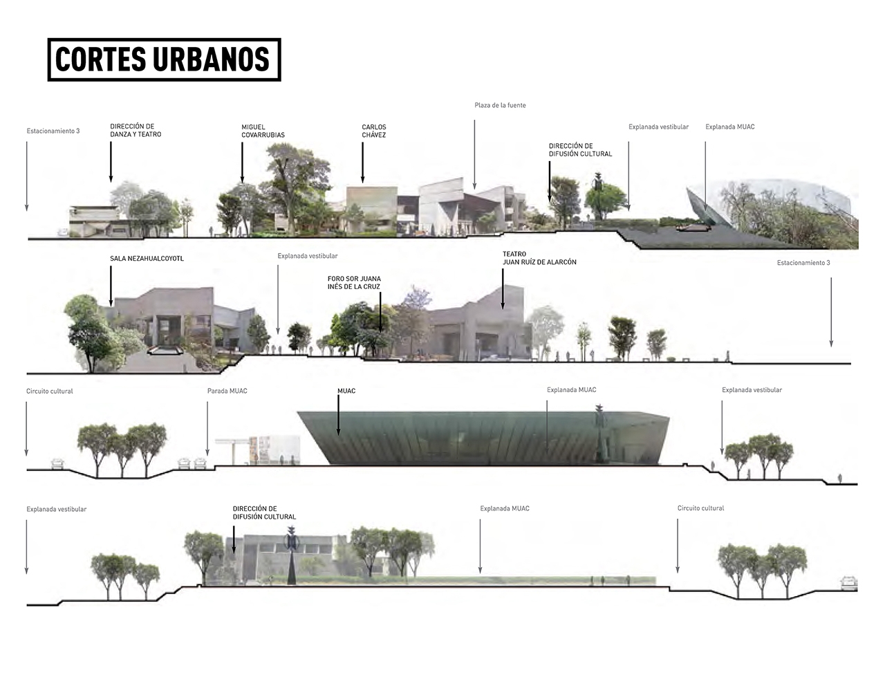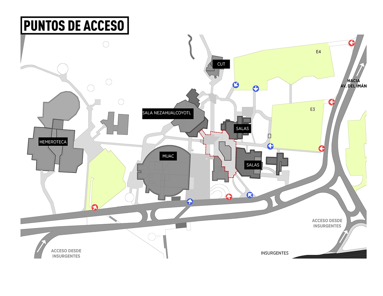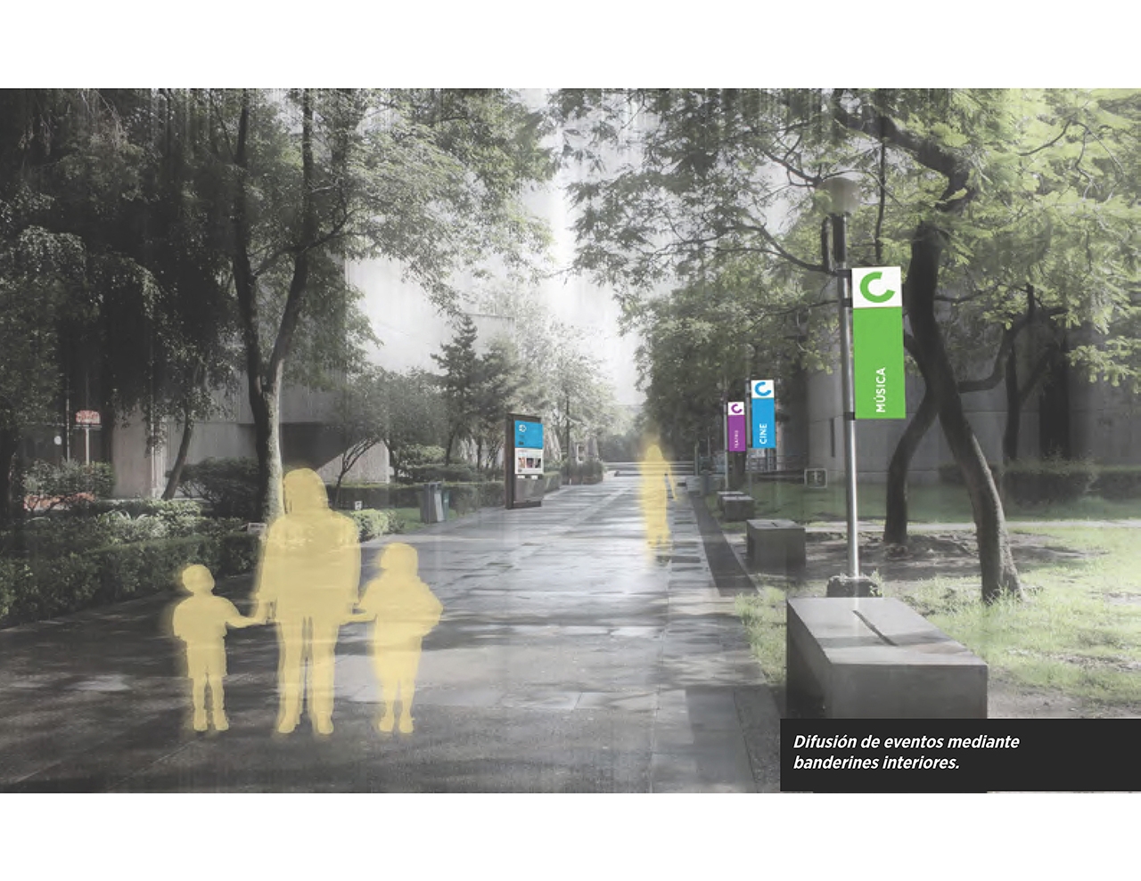 El funcionamiento independiente y la falta de comunicación visual entre los recintos culturales del CCU han fragmentado su imagen resultando en una falta identidad.