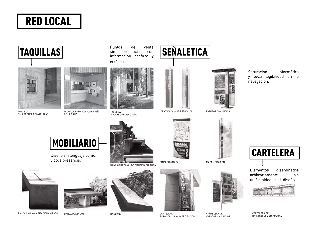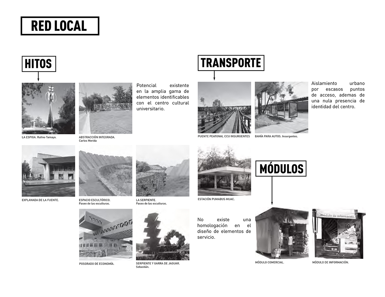 Desde nuestro punto de vista, esta situación no favorece a la captación de un público más universal. Por lo tanto, se propone reivindicar las cualidades del conjunto, enfatizando sus rasgos arquitectónicos más paradigmáticos a través de una identidad gráfica que unifique la comunicación de sus actividades. Así como, generar estrategias de comunicación y “marketing” que posicionen al CCU como punto de referencia mundial.