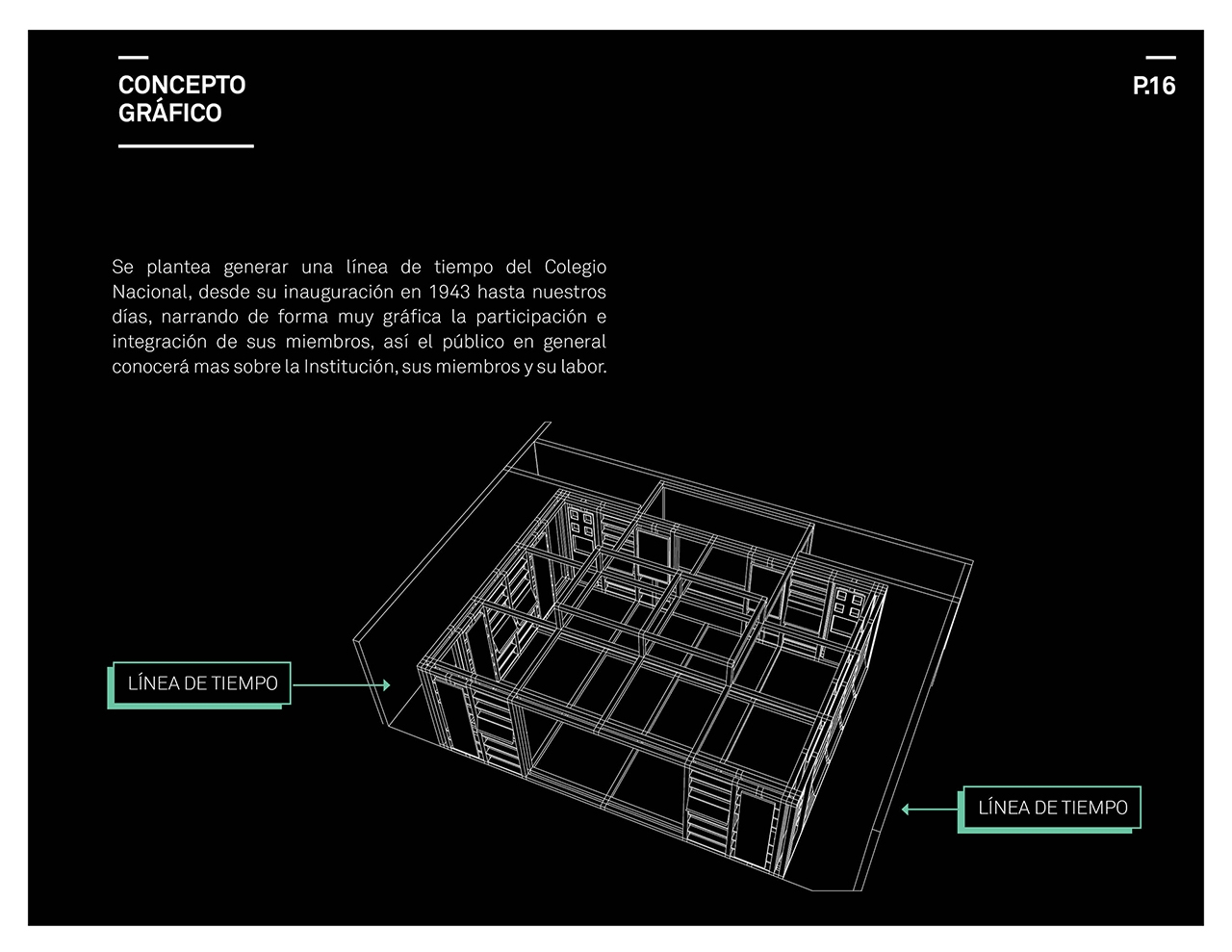 La dirección que el proyecto ha tomado es la de generar un espacio contenedor permeable a los flujos y visuales del público. La tectónica del proyecto privilegia la transparencia y accesibilidad al pabellón logrando una nueva mirada hacia la institución del COLEGIO NACIONAL.